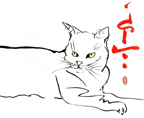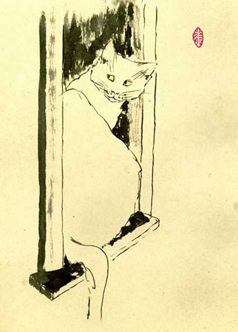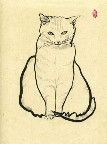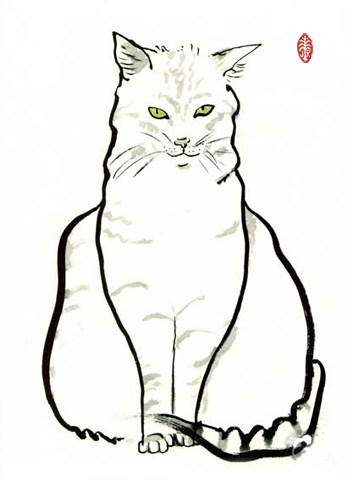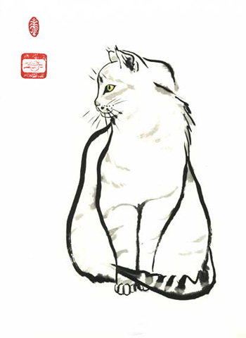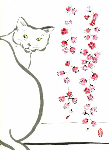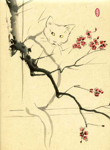 Minette with Plum Blossom #2 Fine brush strokes and grey wash with watercolour 24.5 x 31 cm $150.00